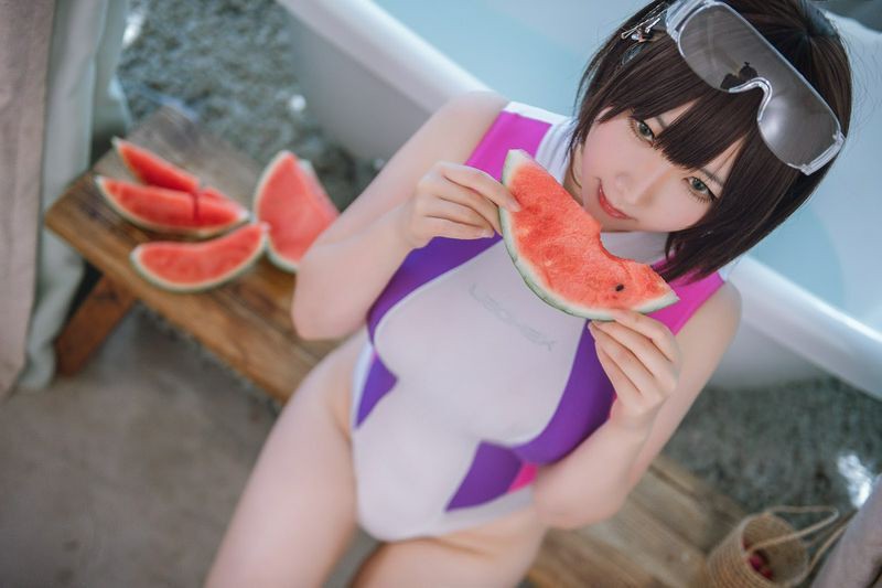 是本末末高衩泳装 高挑长腿勾引你